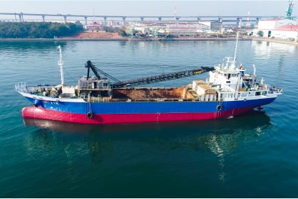 汚染土壌、資材、砕石、リサイクル材などの収集および運搬(静脈物流)を行っています。